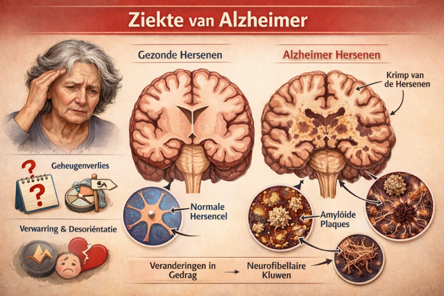 Denk niet: ik leef gezond, een ziekte overkomt mij niet, dat is jezelf bedriegen. Hoe ouder hoe meer kans op lichamelijk ongemak. De hersenziekte Alzheimer is de meest voorkomende doodsoorzaak. Neuropatholoog/psychiater Alois Alzheimer († 1915) ontdekte in 1906 het proces van afstervende hersencellen, een ziekte die je sluipenderwijs vernietigt. De oorzaak is het ontstaan van eiwitophopingen die de verbinding tussen hersencellen blokkeert. Alzheimer is een vorm van dementie, tot nu ongeneesbaar.