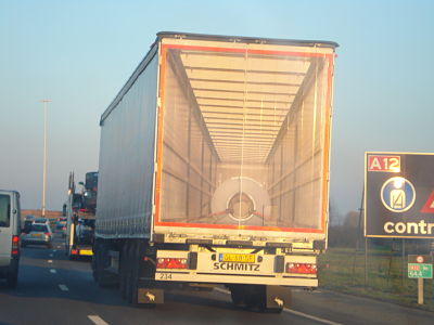 Een Poolse vrachtwagen met Nederlands kenteken en een buitengewoon ruimtelijk effect op de A12.