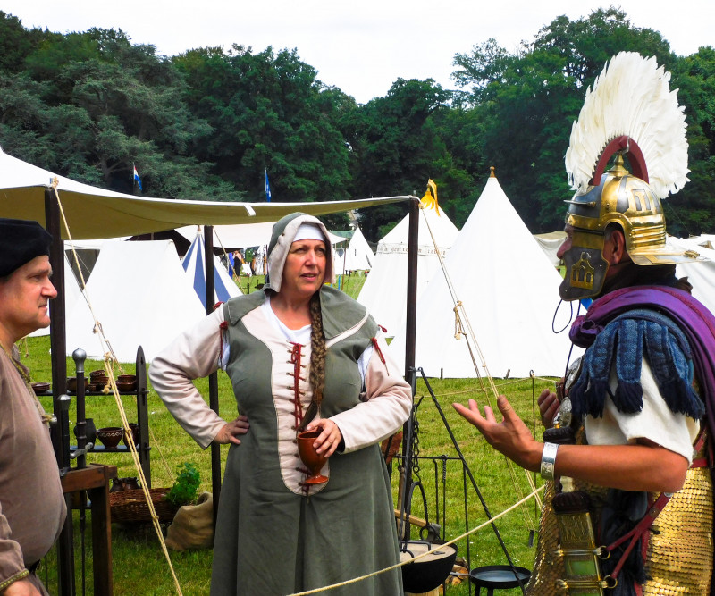 Historische gebeurtenissen, daaronder zwaardvechten, hevig kanongebulder, muziek en zang vulden het terrein. Het is interessant te zien hoe nauwkeurig, zeg maar gerust uiterst nauwkeurig, de deelnemers hun bestaan in de uitgebeelde tijdvakken, van de prehistorie tot en met de Tweede Wereldoorlog, weergeven. Petje af! Franse verpleegsters uit WOI namen zelfs een hondenkar mee. Nederlandse vrouwen vertelden hartstochtelijk over hun hobby, het berijden van stokoude vooroorlogse motoren. En de huurlingen uit het leger van Oranje maakten overduidelijk meer geïnteresseerd te zijn in pegels dan in het behoud van Nederland.