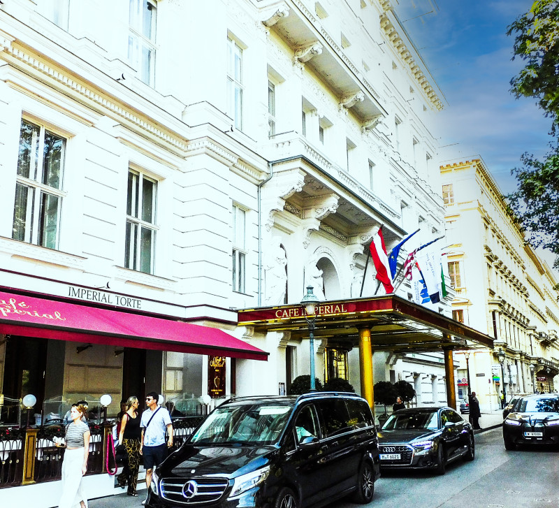 Hotels met een geschiedenis hebben altijd mijn interesse. Daartoe behoort zeker het luxe Hotel Imperial in Wenen, een onderdeel van de Marriott hotelketen. Dit voormalige paleis aan de Kärntner Straße werd begin jaren zeventig van de negentiende eeuw omgebouwd tot hotel.