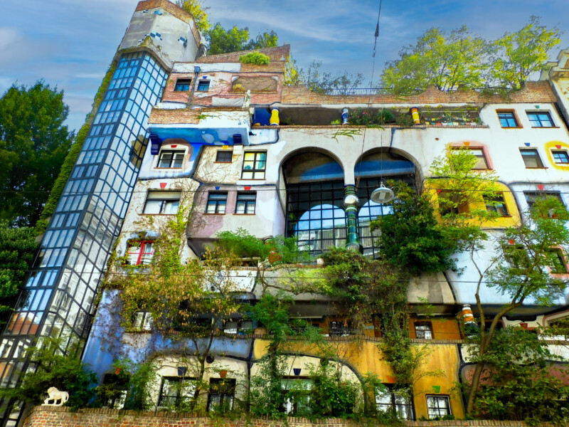 Het Hundertwasserhaus in Wenen is een sociaal woningbouwproject dat hoog op de lijst staat van veel bezochte objecten. In dit sociale woningproject – 52 woningen – vloeien mens en natuur samen. Ontwerper, de kunstenaar Friedensreich Hundertwasser – pseudoniem van Friederich Stowasser († 2000), liet zich overvloedig inspireren door de antroposofische droom van Rudolf Steiner.